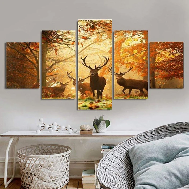 Hot Sale 5Pcs Canvas Wall Art for Living Room Canvas Prints Home Decor Without Frame Paintings Deep Forest D